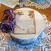 Un cordon 3 brins torsadés de couleur rose poudre, une étiquette "Lovely Roses", un noeud en dentelle rose poudre, et trois magnifiques roses de couleur vieux rose, finissent la déco.