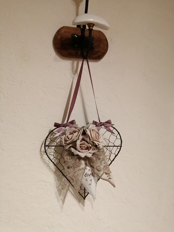 Cette suspension en forme de cœur est en fer grillagé de dimensions 21x20cm, pour le coeur seul.