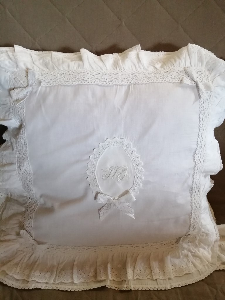 apportent le charme d'antan à cette housse de coussin très romantique.