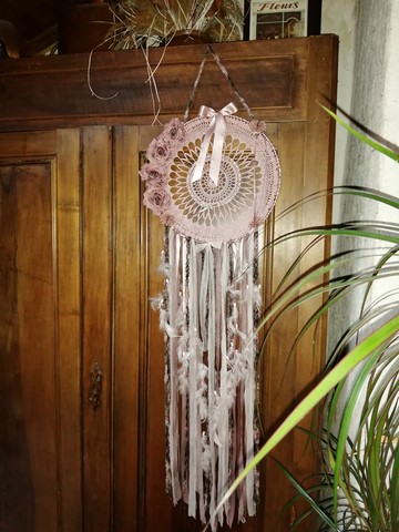 Attrape-Rêves de la série "Poudre de Rose", inspiré par la couleur et la douceur de la poudre de riz de ma grand-mère !
