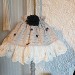 - 1 noeud en dentelle de coton grège et un bouton de rose mousseline noire, finissent la déco.