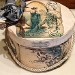 De la peinture biscuit pastel et une patine taupe accentue son aspect Vintage, des boites à chapeaux de nos grands-mères.