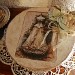Un cordon 3 brins torsadés de couleur beige rosé, deux roses en tissu fané de couleur vert sauge et de la dentelle de coton écrue, finissent la déco.