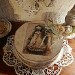 Cotonnade avec impression manuscrite, roses en tissu fripé donnant un rendu de roses fanées, broderie anglaise et rubans de coton, magnifiques gravures Victoriennes, et le tout sous une dominance de couleur vert sauge, si douce et élégante.