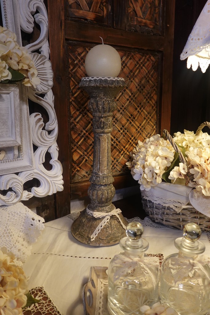 Ce très majestueux Bougeoir de la Collection "Hortense" est en bois grisé, de très belle qualité, sculpté à la main.