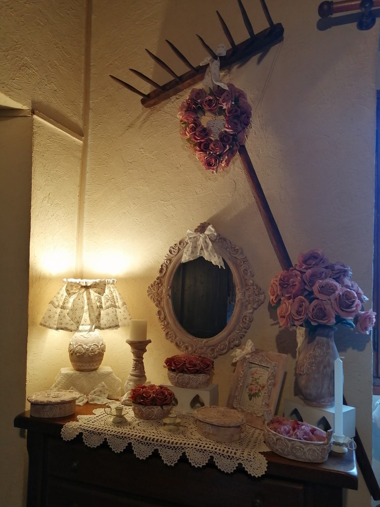 Cette très belle suspension Cœur fleuri de la Collection "Rosa Terra" a une hauteur totale de 48cm, le cœur fleuri de 30x30cm.