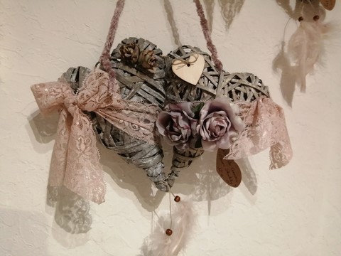 2 cœur osier gris de dimension chacun 15x21cm