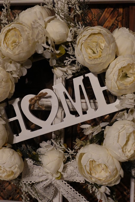 Une magnifique Couronne en osier blanchi, d'un diamètre de 35cm, est garnie de :